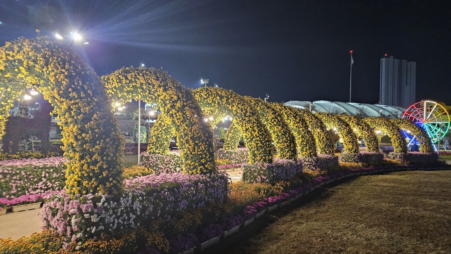 양산 국화축제 야간 구경한다.