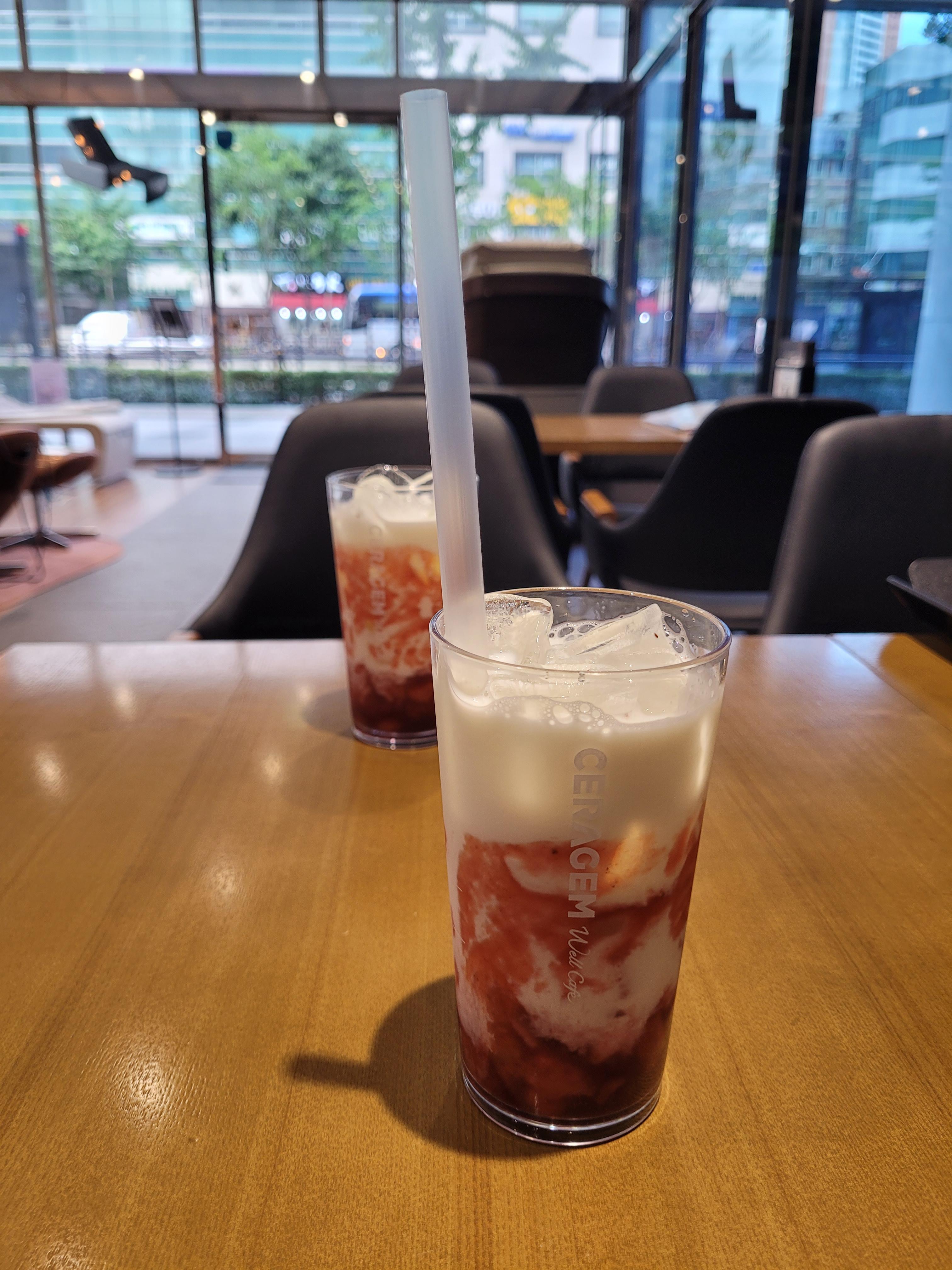 딸기라떼 대신 석류오미자차 한잔.