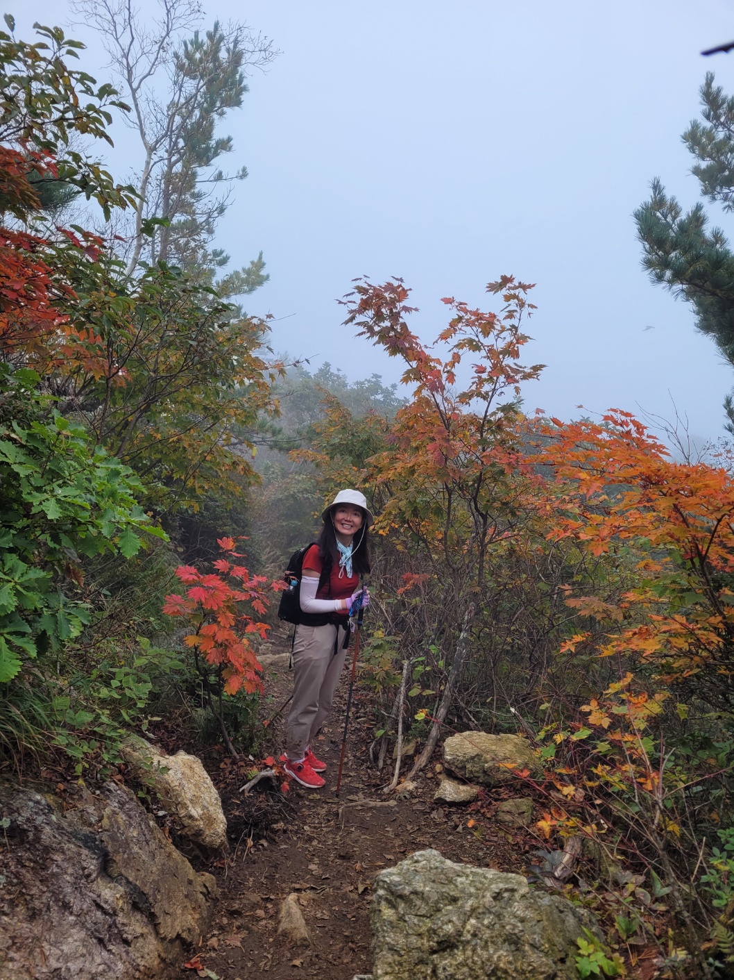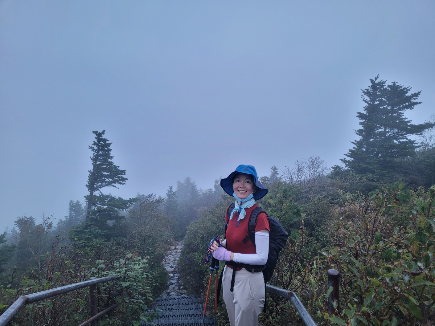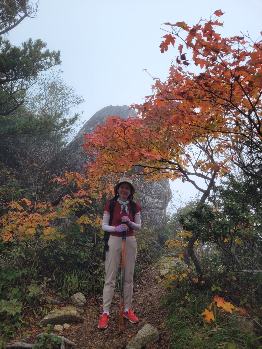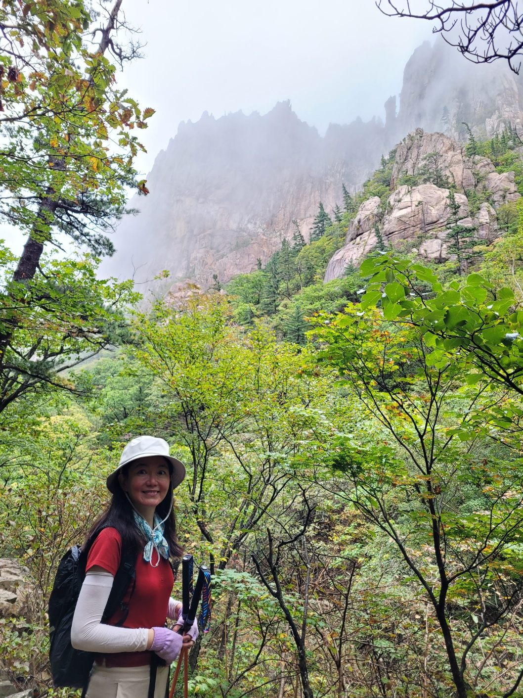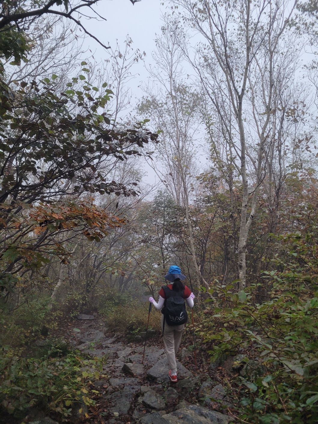 다음날 아침 안개속에서 산행시작.