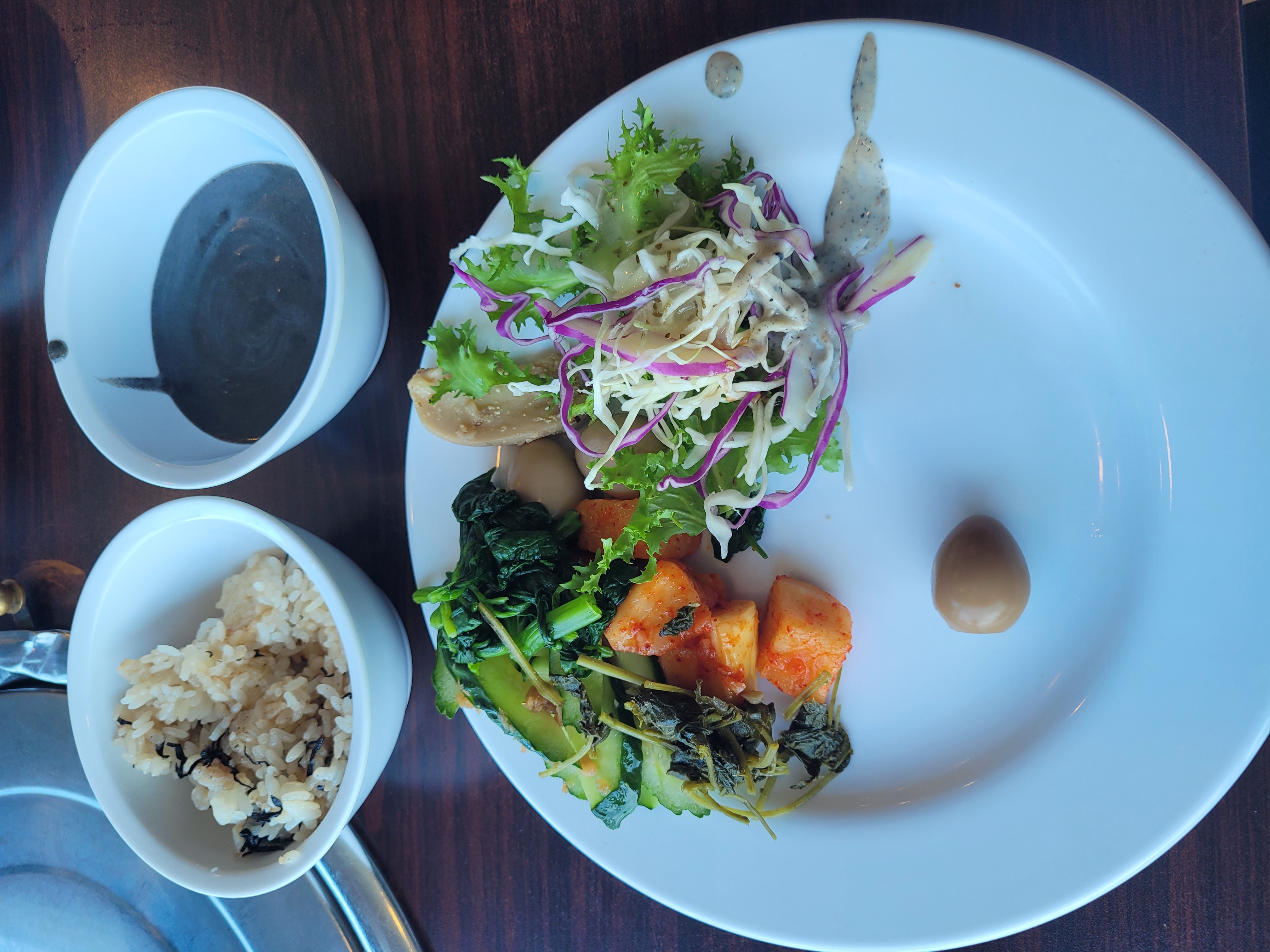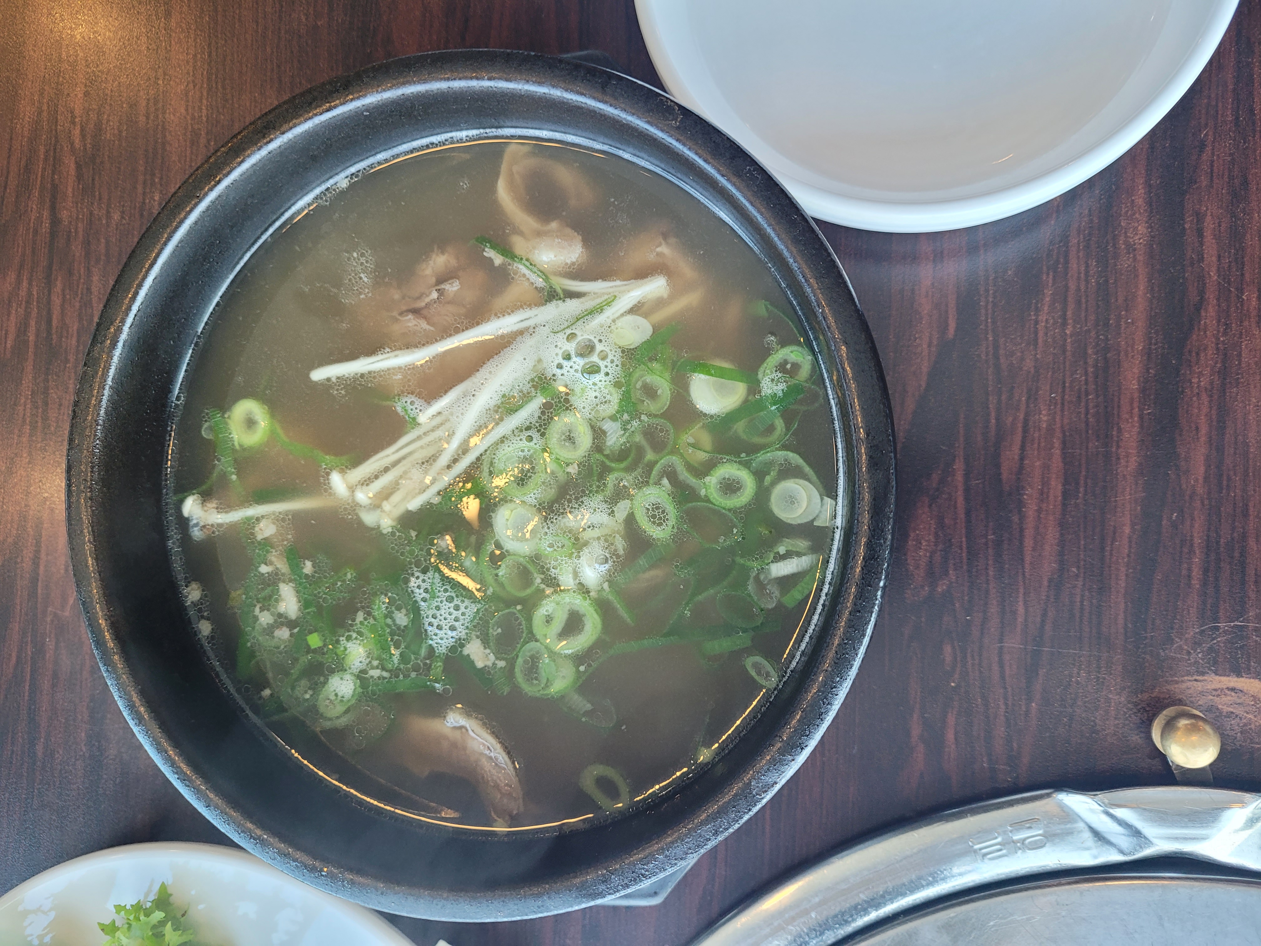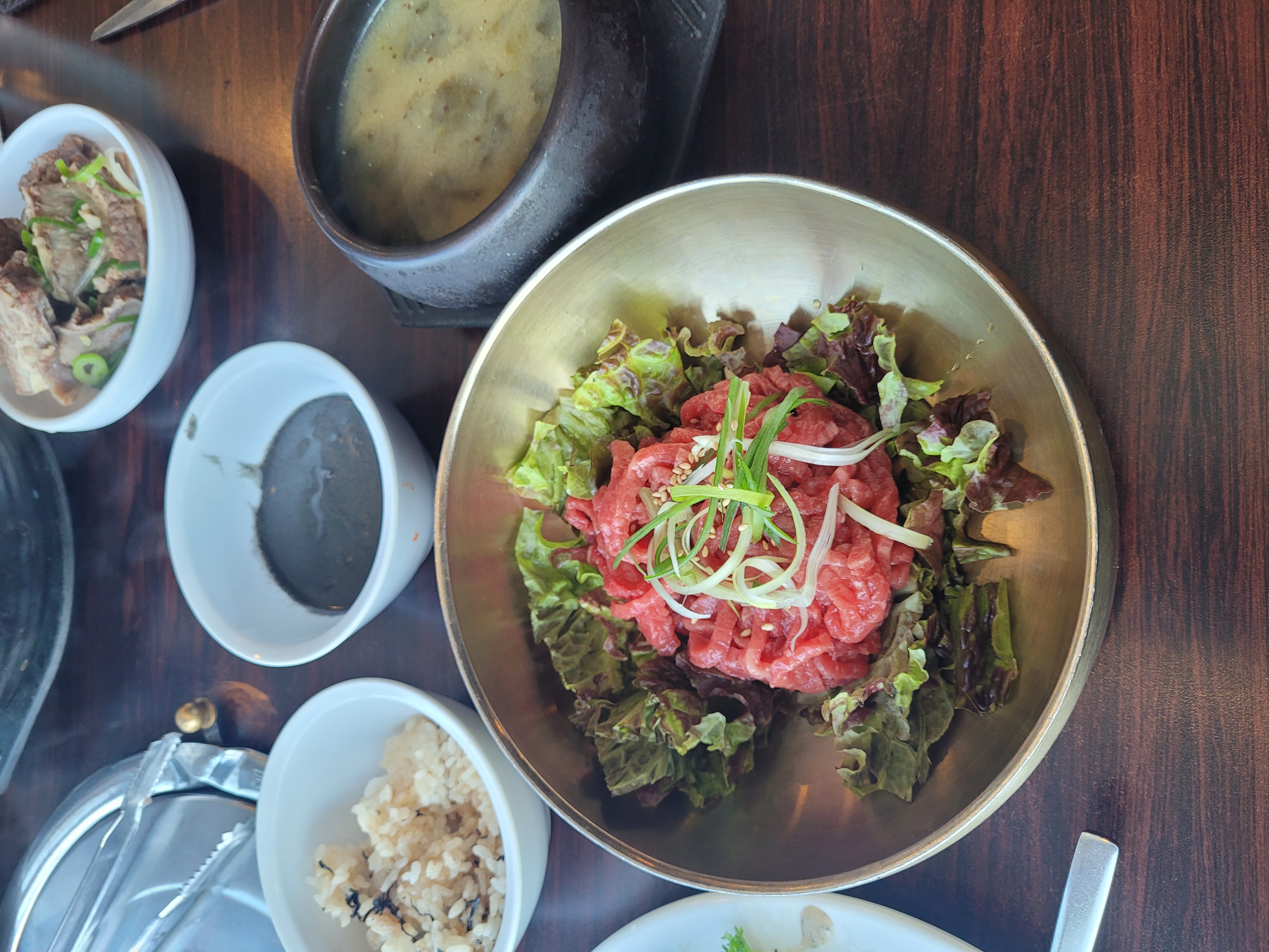 육회주문하니 된장국대신 시락국이 나온다.